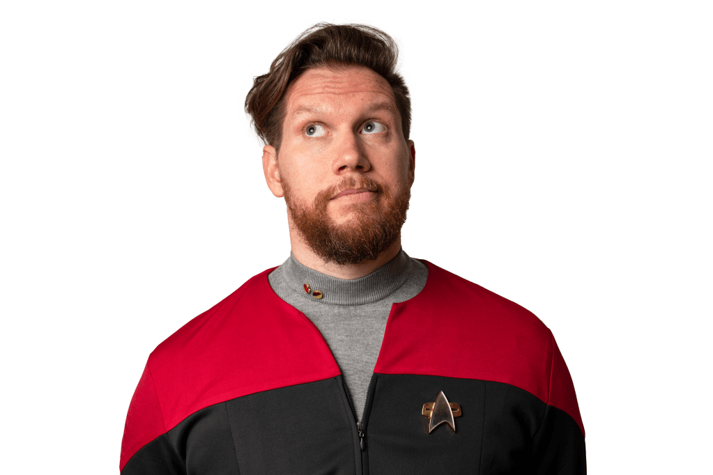 He’s also a bit of a Star Trek nerd (as you can see from his first and only attempt at cosplay) and was heartbroken not to have been invited to any Star Trek-themed orgies when he went to Comic Con.